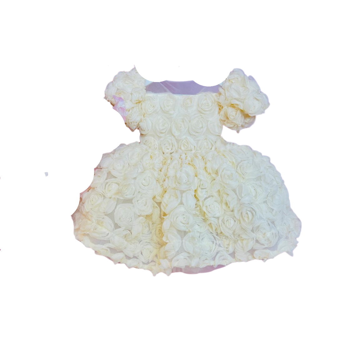 Diana Krem Güllü Kız Bebek Elbisesi,Özel Dikim Çocuk Elbisesi, Doğum günü elbisesi, 0-12 Yaş